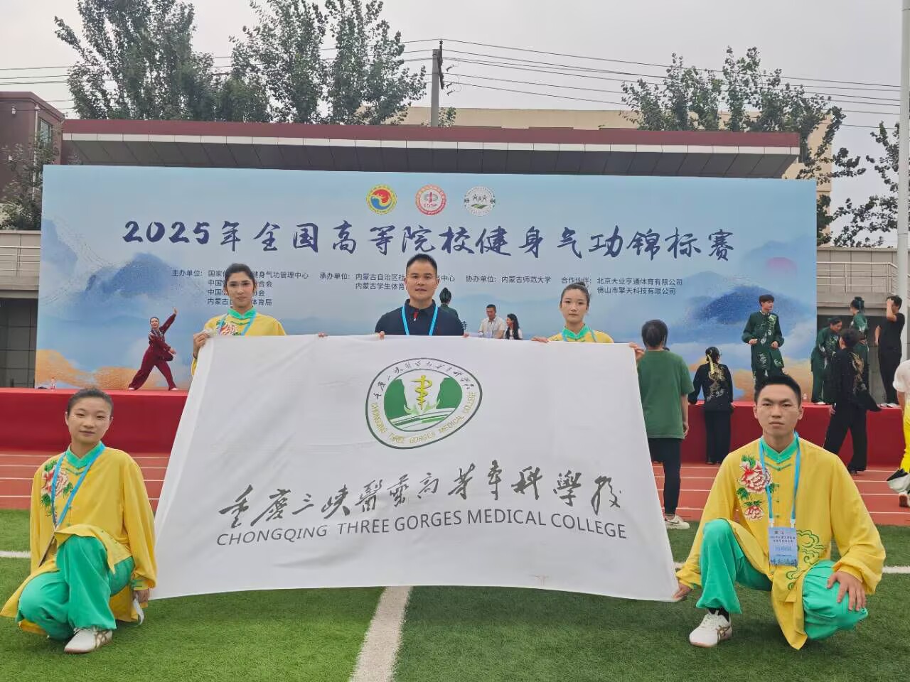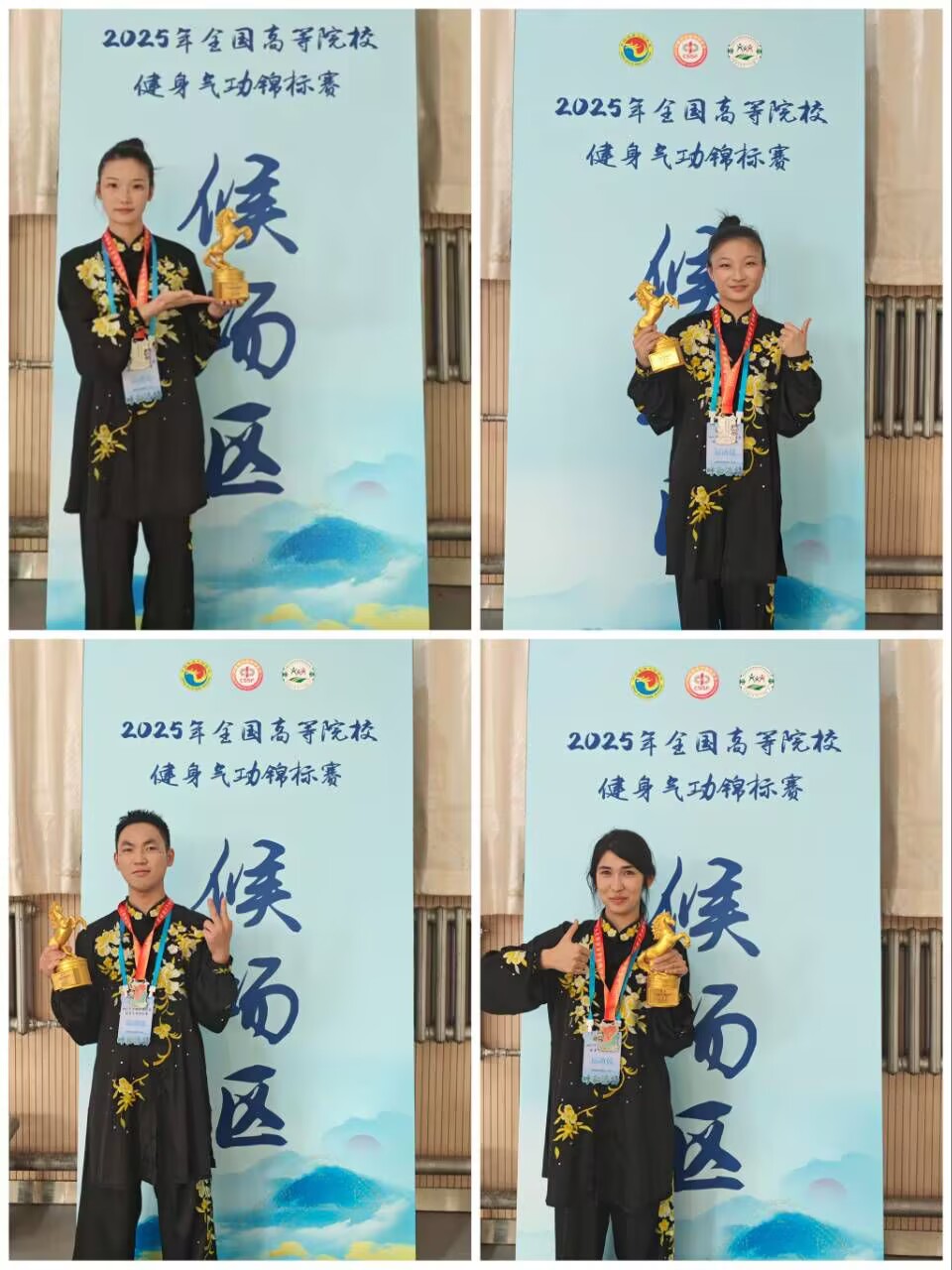 7月26日—31日,由国家体育总局健身气功管理中心、中国学生体育联合会、中国健身气功协会、内蒙古自治区体育局主办的2025年全国高等院校健身气功锦标赛在内蒙古师范大学举行,我校健身气功代表队在李华斌老师带领下参赛,荣获乙组集体项目二等奖2项,个人项目获得第二名、第四名、第七名各1项。