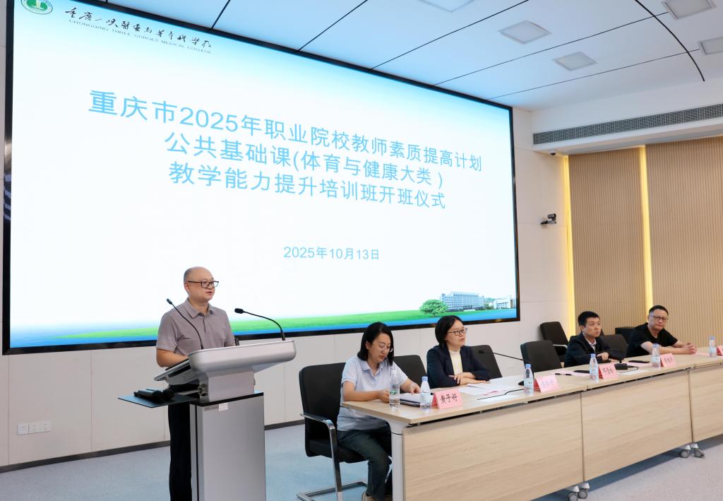 今年,学校成功入选两项重庆市2025年职业院校教师素质提高计划项目。10月13日上午,重庆市2025年职业院校教师素质提高计划公共基础课(体育与健康大类)教学能力提升培训班在第二教学楼报告厅正式开班。学校党委委员、副校长邓雪松,合作交流中心负责人及相关工作人员出席开班仪式,仪式由公共基础部副主任李红丹主持。此次培训吸引了来自全市50余所中职院校的97名骨干教师参加。