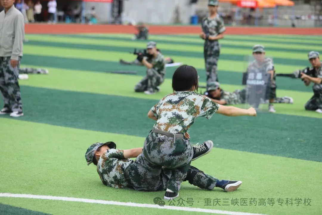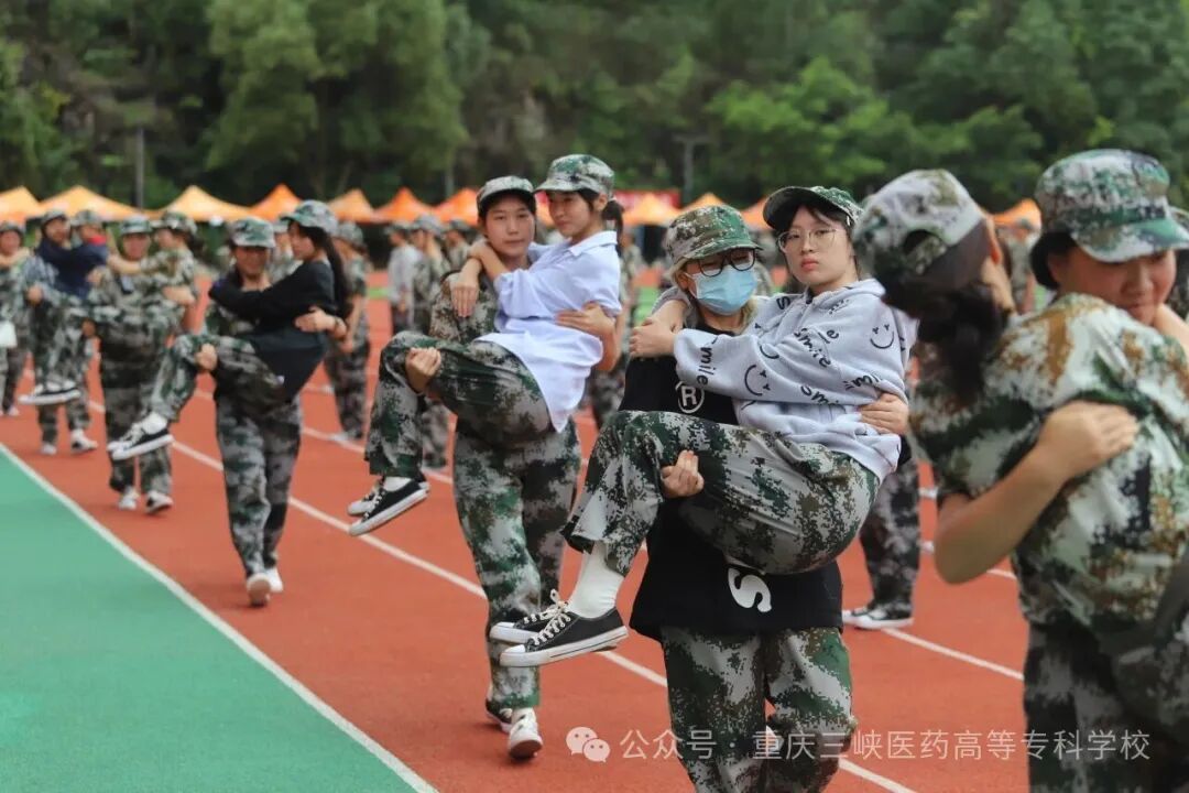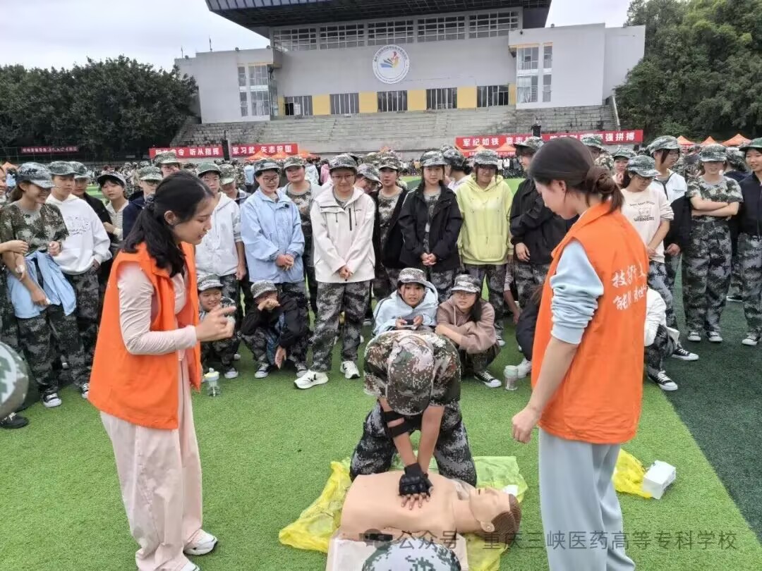 训练场上,队列练习从军姿到分列式,每个动作都凝聚着坚持;擒敌拳训练场上,吼声震天,动作刚劲,一招一式尽显青春力量;健康操练习则张弛有度,在紧张训练中有效调节身心。夜间拉练是一场对体力、毅力与协作的综合考验,队伍如长龙般静默前行,坚定的脚步声踏破夜色,锤炼着同学们的意志品质。作为医学院校,心肺复苏培训成为本次军训的特色亮点,专业医护人员系统讲解急救理论、分步示范操作要领,同学们跪地实操,在模拟人身上反复练习按压手法与节奏,将敬畏生命、勇于担当的医者情怀深植心田。