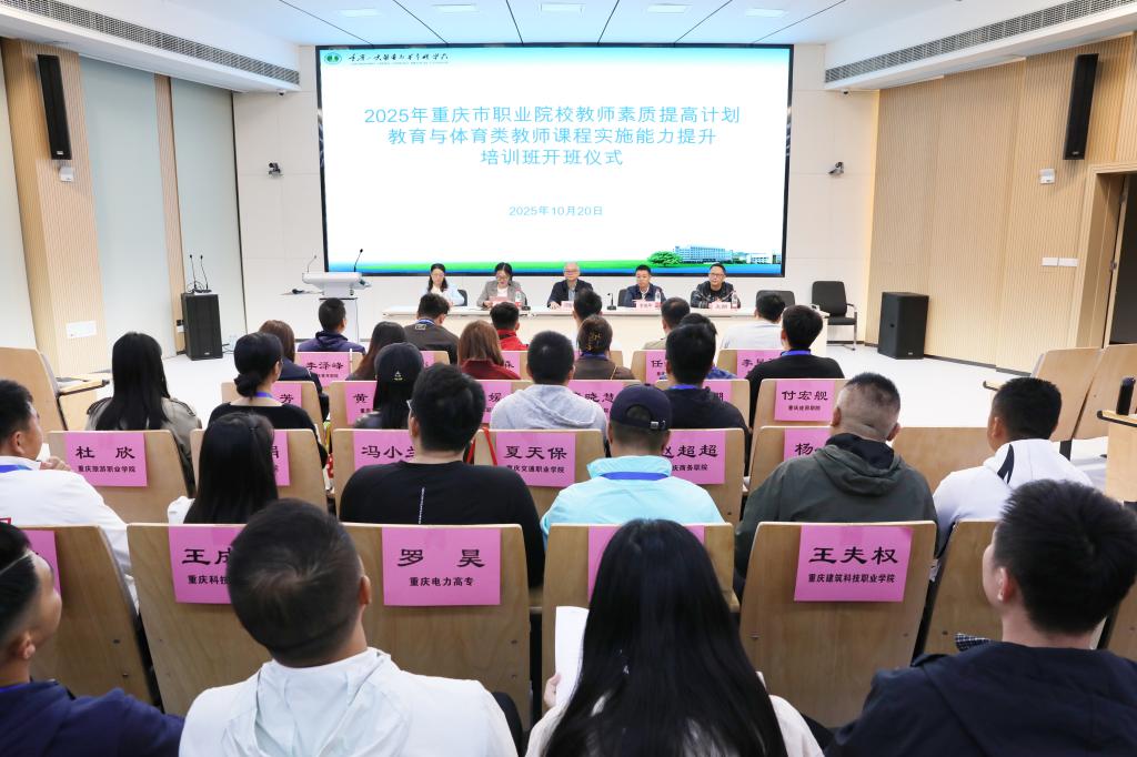 10月20日上午,2025年重庆市职业院校教师素质提高计划教育与体育类课程实施能力提升培训班开班仪式在学校第二教学楼报告厅举行。学校党委委员、副校长邓雪松,合作交流中心负责人李魁华,相关工作人员,以及来自全市各高职院校的30名体育与教育类骨干教师出席仪式。仪式由公共基础部负责人李红丹主持。