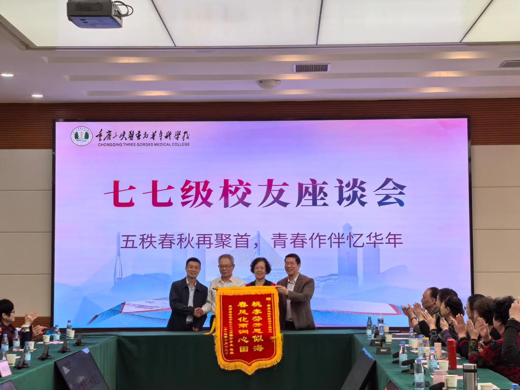 20251019日,万州秋阳正好,原万县中医药学校1977级中医专业的29位老校友,带着跨越半个世纪的牵挂,从祖国各地奔赴而来,重返如今的重庆三峡医药高等专科学校,赴一场与母校、与同窗的时光之约。学校副校长苏绪林、合作交流中心主任李魁华、中医学院党总支副书记张宜蓓出席活动,与校友们共话往昔、共叙情谊、共绘未来。