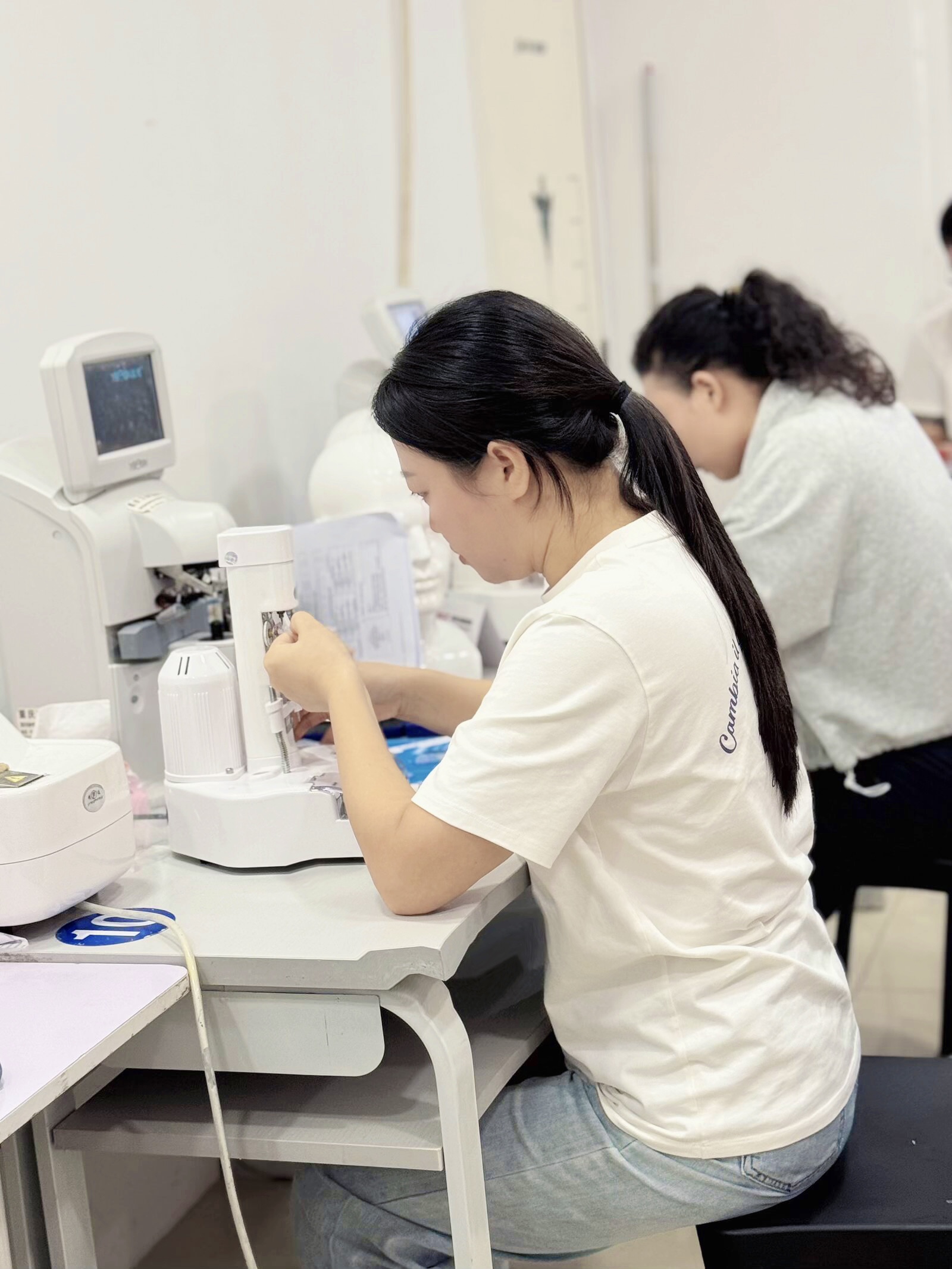 本次比赛汇聚了全市高校、医院及企业200余名顶尖选手同台竞技,竞争激烈。赛事对接行业实际,围绕“验光”与“定配”两大核心项目展开,采用“理论笔试+实操考核”相结合的综合性赛制,旨在全面、深入地评估参赛者的专业知识储备、技术娴熟度及临场应变能力。经多轮比拼,我校师生发挥出色,教师周丽、张博渊在配镜组比赛中分获第一名和第五名,学生李春红在验光组比赛中荣获第一名。