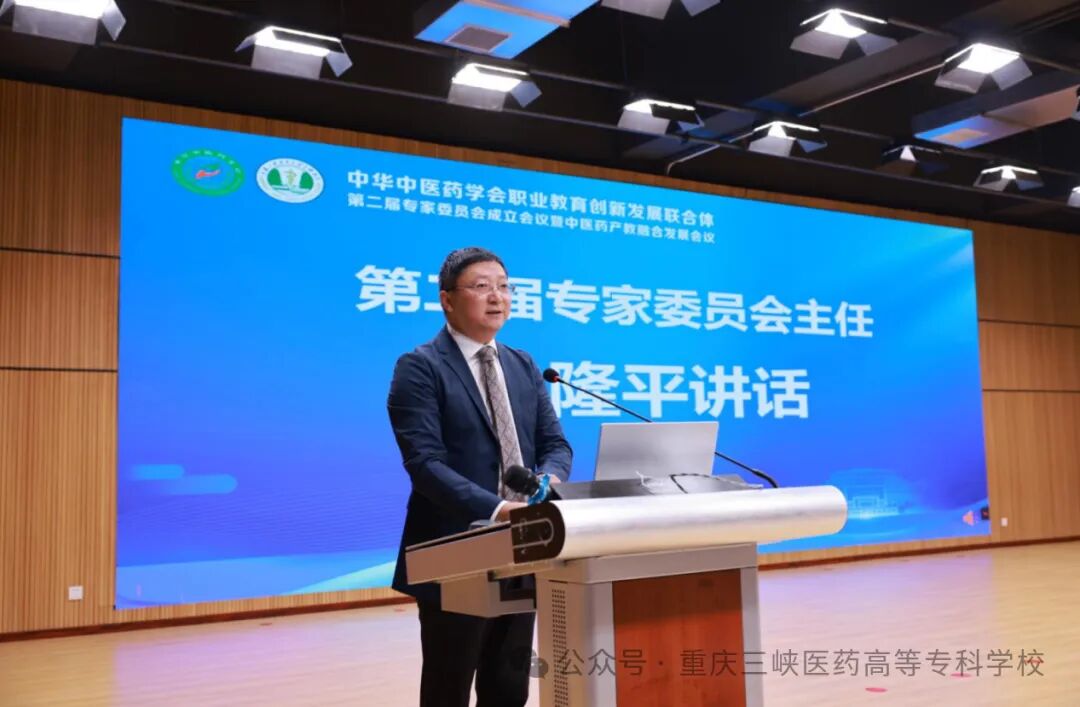 2025年10月28日至29日,由中华中医药学会主办、中华中医药学会职业教育创新发展联合体承办、全国中医药行业产教融合共同体协办的“职业教育创新发展联合体第二届专家委员会成立会议暨中医药产教融合发展大会”在我校举行。中华中医药学会副秘书长陈俊峰、师承继教部主任周艳杰以及来自全国51家成员单位、100余位代表出席会议。学校党委副书记、校长冉隆平,副校长沈力、苏绪林、邓雪松出席会议。会议由沈力主持。