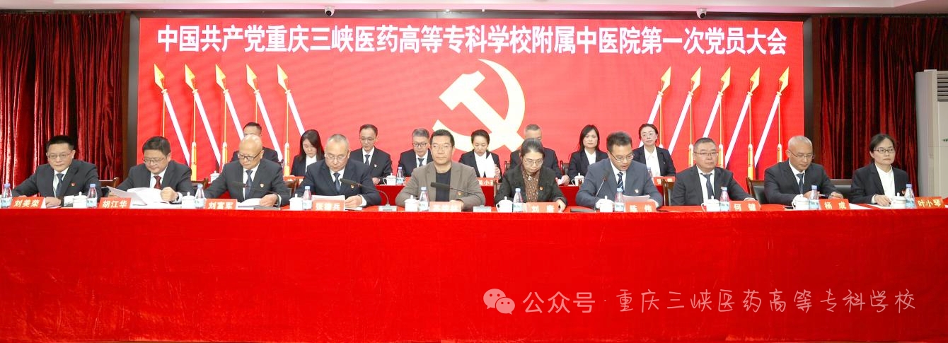 2025年11月19日,中国共产党重庆三峡医药高等专科学校附属中医院第一次党员大会圆满胜利召开。大会审议通过了党委和纪委的工作报告,选举产生了第一届党委委员、纪委委员。重庆三峡医药高等专科学校党委委员、副校长苏绪林,党委委员、组织部部长刘唐出席本次大会。医院168名在职党员、退休党员参加大会。