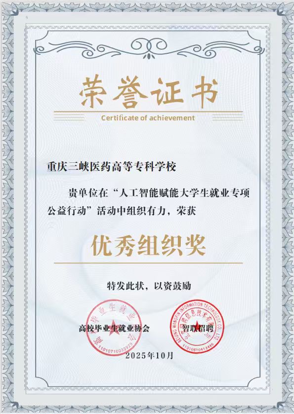 近日,由高校毕业生就业协会与智联招聘联合主办的“人工智能赋能大学生就业专项公益行动”评选结果揭晓。我校凭借卓越的组织能力和创新服务模式,从全国参评院校中脱颖而出,荣获“优秀组织奖”。