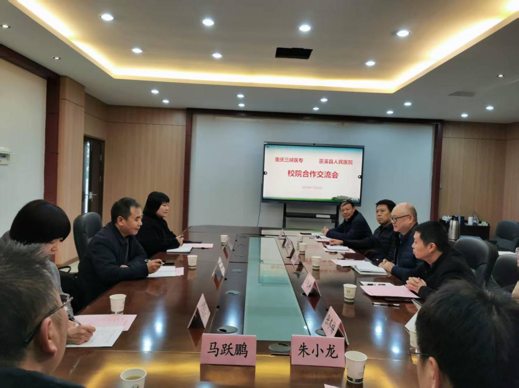 11月28日,巫溪县人民医院党委委员李达斌率队科教科负责人一行来校,开展深化校院合作交流。学校党委委员、副校长邓雪松出席会议,合作交流中心、学工部、临床医学院等部门负责人和相关人员共同参加会议。