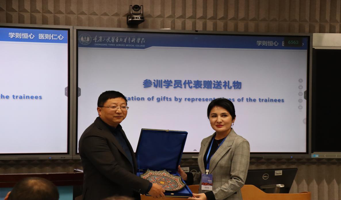 李小山逐一介绍了中方参会领导,以及乌兹别克斯坦、巴基斯坦两国培训代表,为本次开班仪式拉开序幕。冉隆平致欢迎辞,介绍了学校发展概况及学校近年来为积极响应“一带一路”倡议开展的国际合作项目成果。他表示,本次培训班是中乌巴三方深化传统医学领域交流合作的重要契机,更是搭建三国医学领域互学互鉴、携手发展的坚实桥梁。他希望学员珍惜学习机会,学以致用,同时也热忱欢迎各位学员走进中国、感受中国,让这段在华学习经历成为缔结中乌巴三国深厚友谊的美好纽带。之后,乌兹别克斯坦、巴基斯坦代表先后发言,高度赞誉中国传统中医文化,对中方搭建此次学习交流平台表示衷心感谢,表达了未来与学校开展长期友好合作、深化医学领域交流的强烈意愿。医学技术学院院长郝坡作安全宣讲,要求学员严格遵守中国法律法规及公共秩序,按时参与培训,提醒中乌巴三方尊重彼此文化差异,共同确保本次学习安全顺利、学有所获。最后,冉隆平代表学校向乌兹别克斯坦、巴基斯坦两方代表赠予纪念礼品,全体参会人员合影留念,开班仪式圆满结束。