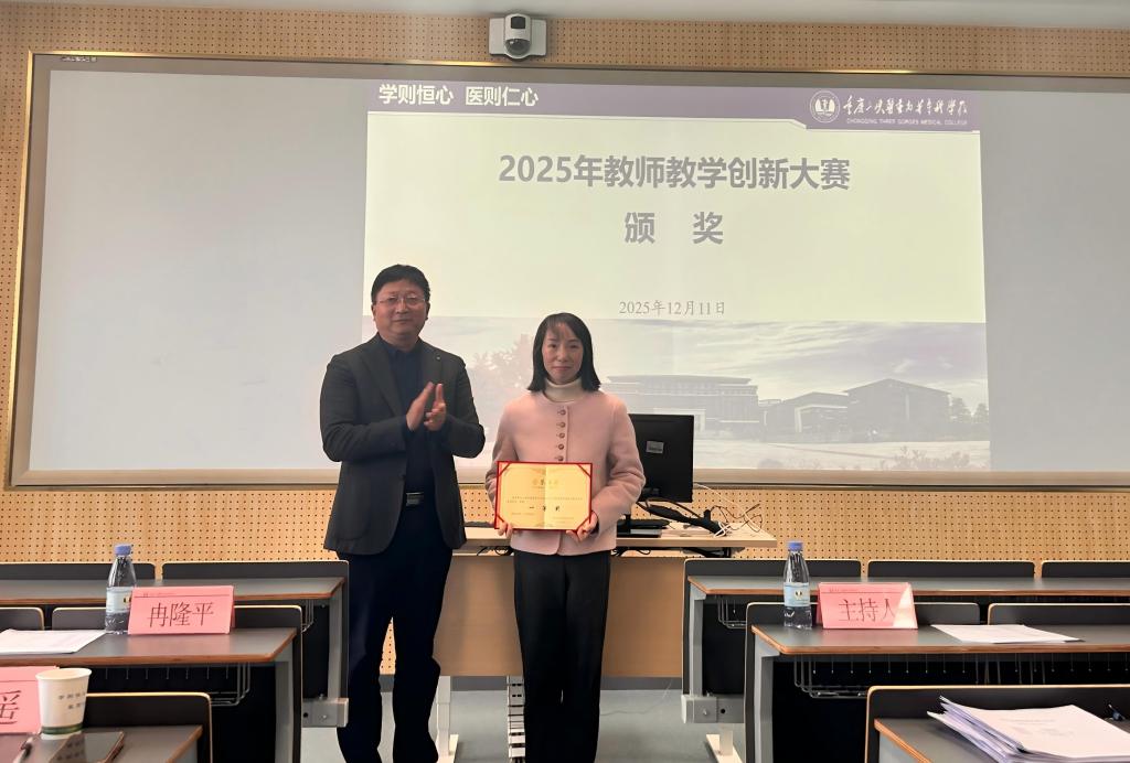 大赛邀请校内外5名专家评委全程指导,从赛事范式、创新亮点、成果呈现等方面提出专业建议。经过激烈角逐,公共卫生与管理学院王丹团队凭借扎实的课程改革成效荣获一等奖,医学技术学院牟凤林团队、临床医学院兰旭团队荣获二等奖,基础医学部罗娇团队等4支队伍荣获三等奖。