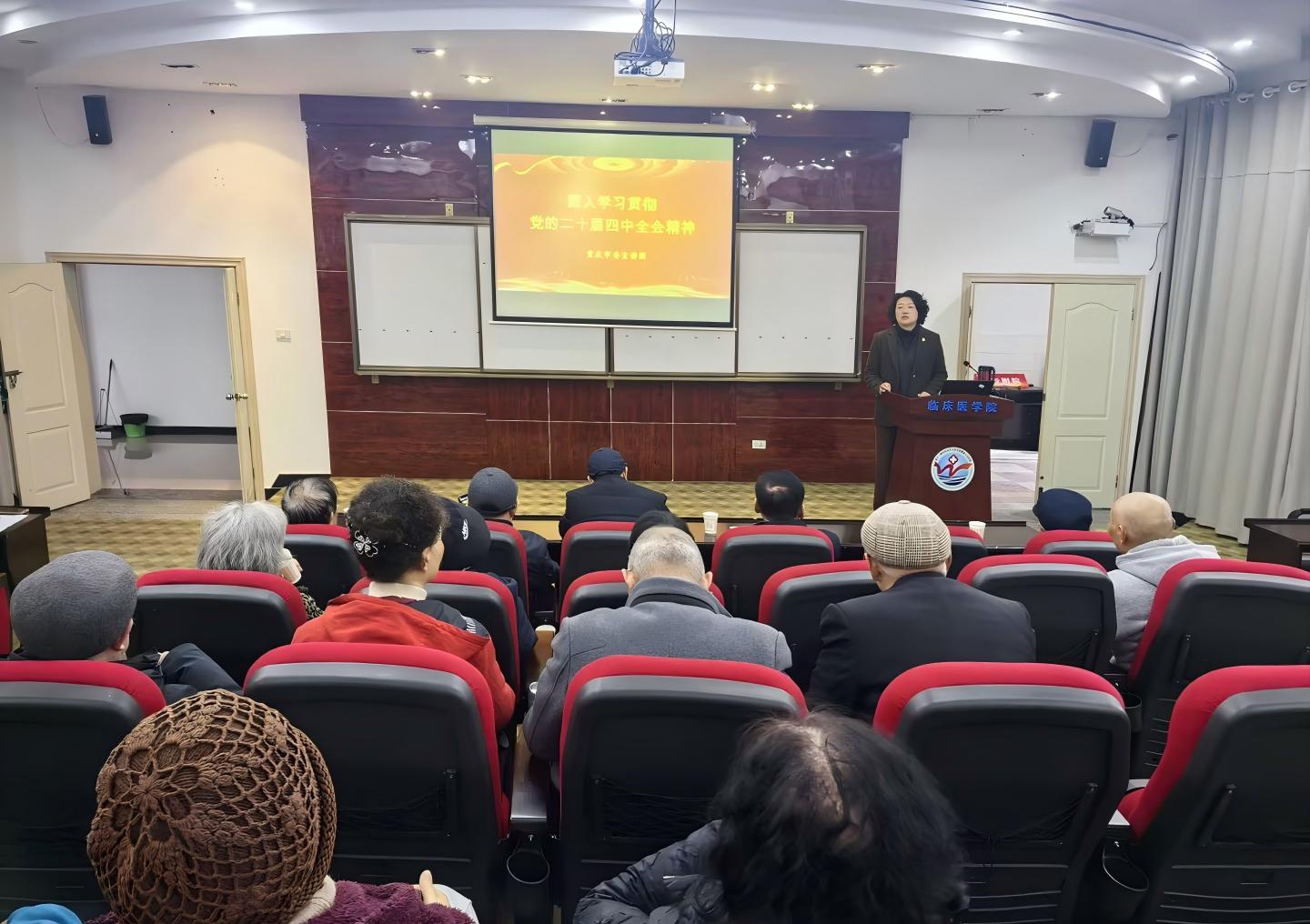 为贯彻党的二十届四中全会精神,引导离退休职工统一思想行动,12月19日,离退休党总支书记、人事处副处长朱晓兰在附属人民医院高笋塘院区影像楼3楼会议室,围绕“深入学习贯彻党的二十届四中全会精神,凝聚银发力量续写新篇章”作专题宣讲。老同志们按时参会、认真聆听、深入领会,现场学习氛围严肃。