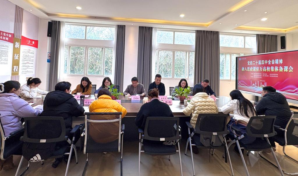 12月19日下午,党的二十届四中全会精神融入思政课驻万高校集体备课会在学校三教307会议室举行。重庆三峡学院、重庆幼儿师范高等专科学校、重庆三峡职业学院、重庆安全技术职业学院、重庆信息技术职业学院5所高校的思政课领域专家学者,以及校内教师代表共计18人参加了集体备课会。学校党委委员、副校长苏绪林出席并讲话,会议由马克思主义学院党总支书记、院长陈爱文主持。