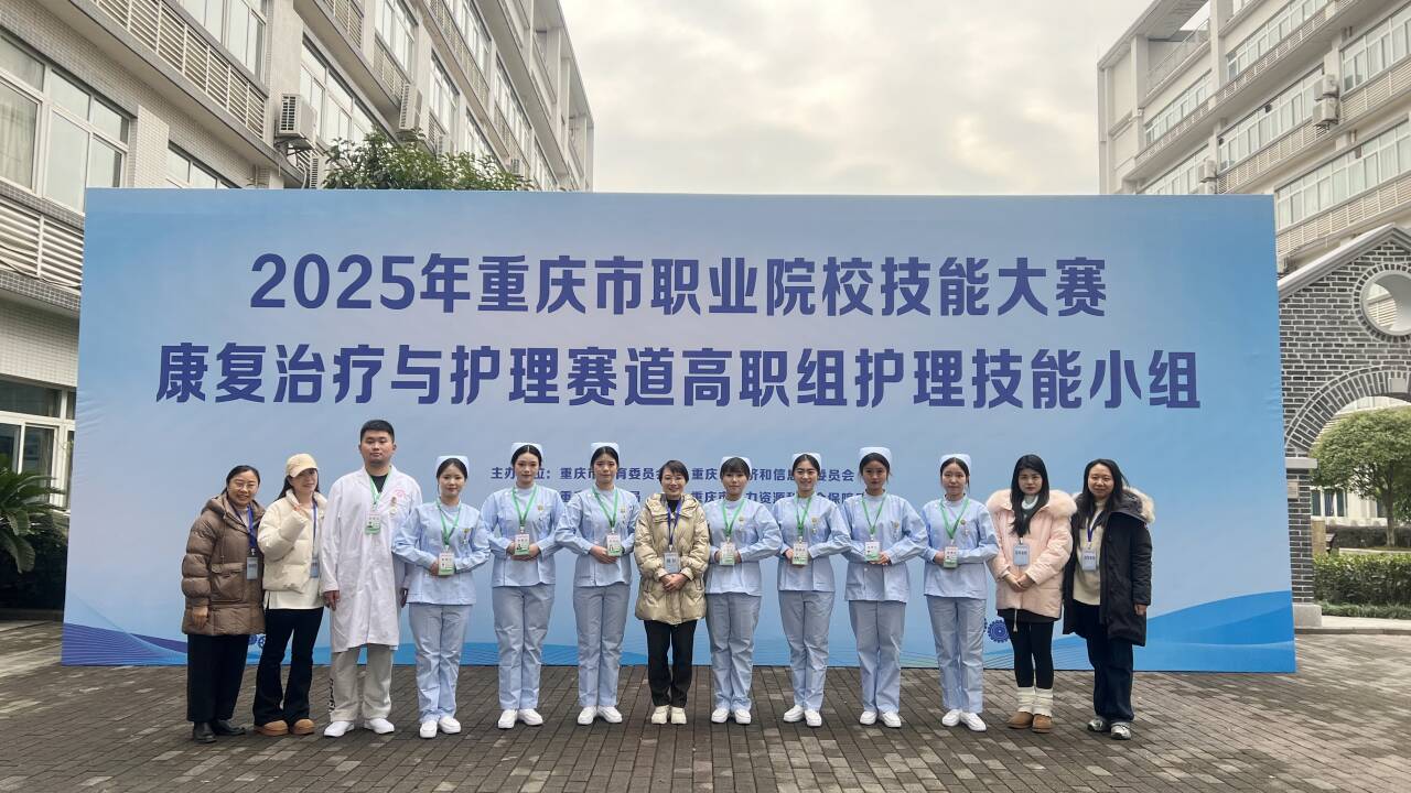 1月7日至9日,由重庆市教育委员会、市经济和信息化委员会、市财政局、市人力资源和社会保障局联合主办的重庆市职业院校技能大赛“康复治疗与护理”赛道高职组护理技能赛项,在重庆医药高等专科学校顺利举行。我校护理学院副院长邓菲菲带领4名指导教师及8名学生组成的两支代表队参赛,最终均以小组第二名的优异成绩荣获银奖,并成功取得2026年世界职业院校技能大赛的参赛资格。