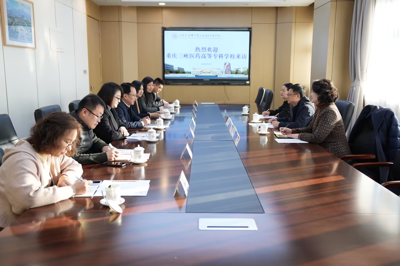 为深入贯彻国家关于深化东西部协作的重要指示精神,积极融入鲁渝协作发展大局,将“山海情”转化为推动学校高质量发展的具体行动,1月20-21日,学校党委副书记、校长冉隆平率队,远赴山东三所知名高等学府,开展博士人才招聘宣讲及人事管理交流学习。此次出访是我校在鲁渝协作框架下,主动对接东部优质资源、强化人才智力交流、学习先进治理经验的重要环节,旨在为学校跨越式发展注入强劲动能。