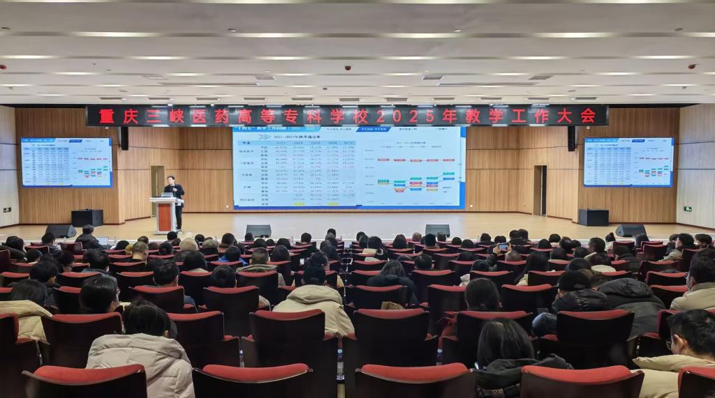 为全面总结“十四五”学校教学工作成就,擘画“十五五”发展蓝图,推动学校教育教学工作再上新台阶,1月22日下午,学校在第四教学楼学术报告厅召开2025年教学工作大会。学校党委副书记、校长冉隆平,党委委员、副校长张建忠、苏绪林、邓雪松出席会议。党政办公室、党委学生工作部、人事处、合作交流中心、校团委、各二级院部、直属附属医院负责人和教师代表300余人参加会议。会议由教务处处长冯晓灵主持。