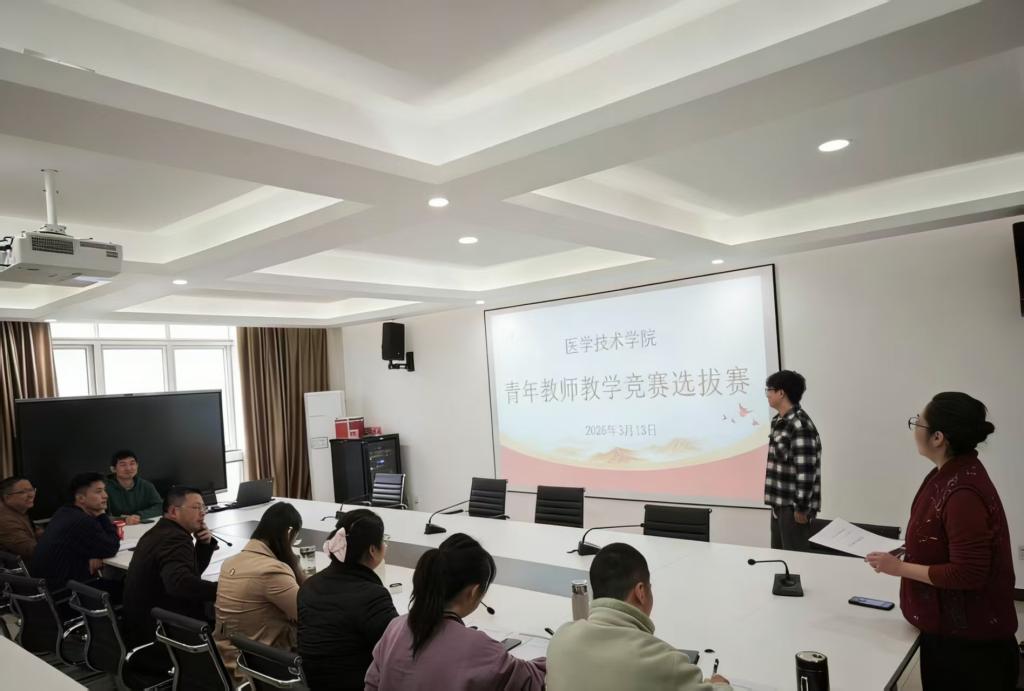3月13日,医学技术学院在B6-415会议室举办青年教师教学竞赛院级选拔赛。学院6名40岁以下青年教师参赛,院长郝坡、副院长蒲永莉及5名专业带头人(负责人)担任评委。
