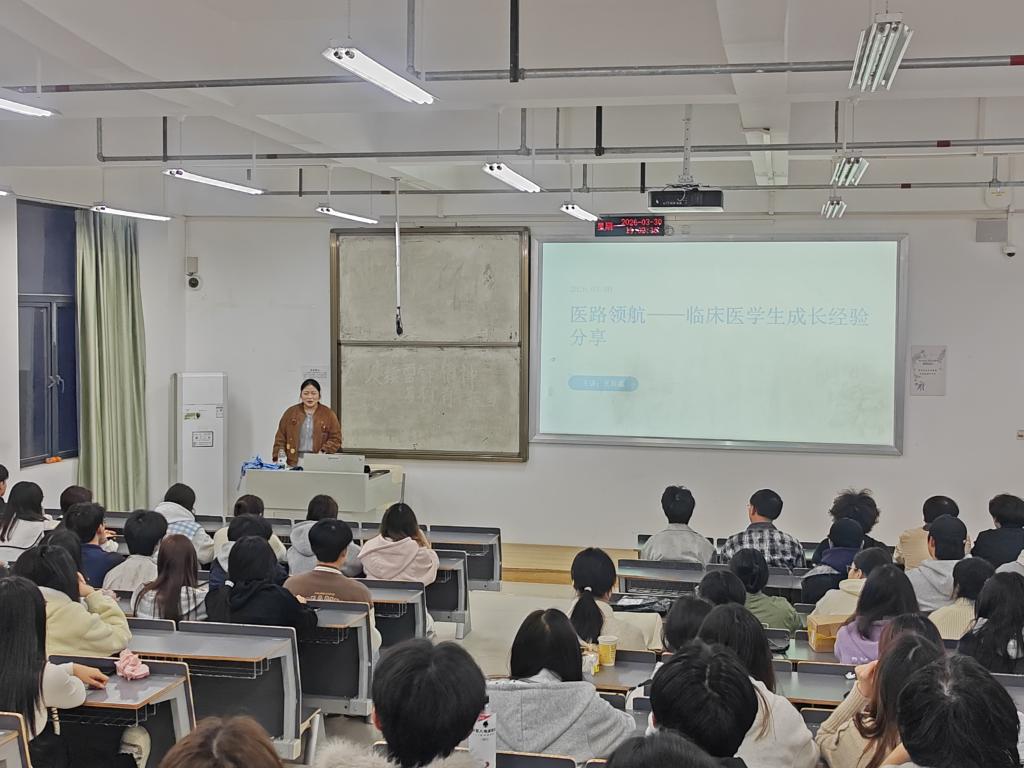 临床学院精准对接学生就业需求,特别邀请2025届成功考取乡镇卫生院事业编的优秀毕业生返校分享备考经验。毕业生结合自身备考经历,从岗位报考条件解读、备考时间科学规划、笔试重难点突破、面试礼仪与答题技巧等方面进行系统讲解,用真实案例为有意向投身基层医疗事业的学生提供可借鉴、可参考的实践路径。5名2026届优秀应届生代表利用返校集训间歇,围绕学业提升、实习安排与职业规划三大核心主题,结合自身成长经历分享感悟,面对面为2024级、2025级在校生厘清成长思路、明晰发展方向,帮助其提前谋划大学生活、绘就职业发展蓝图。