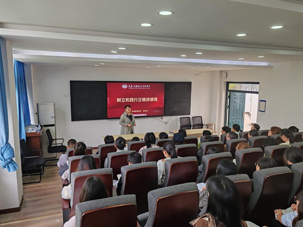 为深入学习贯彻习近平新时代中国特色社会主义思想,扎实推进树立和践行正确政绩观学习教育,4月14日,药学院党总支举办树立和践行正确政绩观专题党课。党课由党总支书记董江峡主讲,学院全体党员参加学习。
