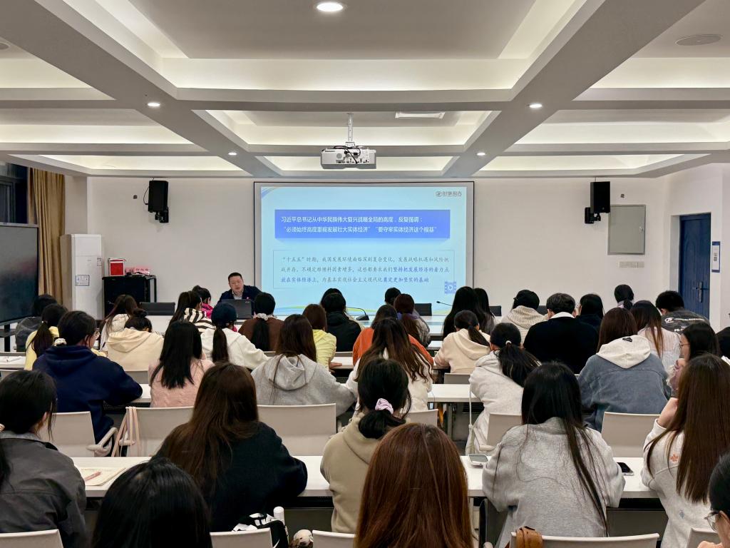 4月22日,医学技术学院党总支副书记、院长郝坡在B6-415会议室,以“强基固本 向实而兴——做实做强做优实体经济”为主题,为学院学生党员、入党积极分子及青马学员代表讲授专题形势与政策课,引导青年学子心系“国之大者”,勇担时代使命。
