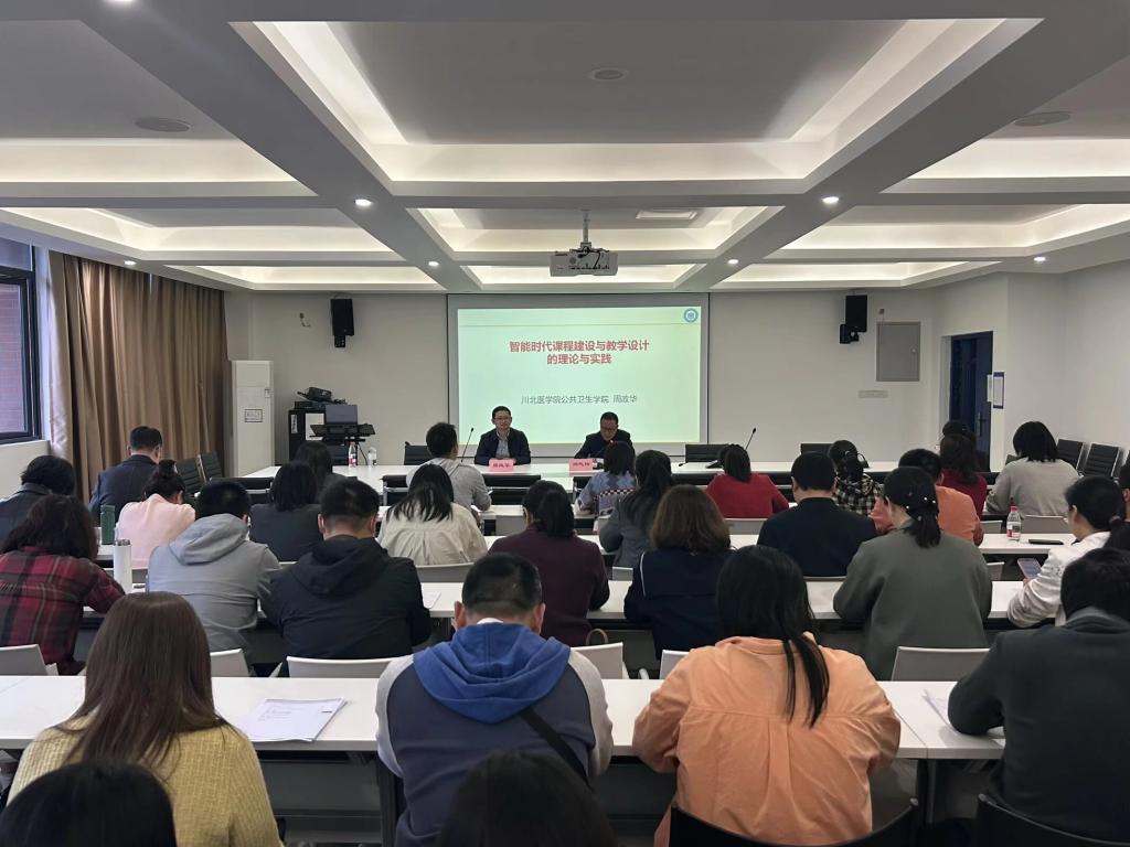 为全面提升教师本科教育教学能力,筑牢专业人才培养质量根基,4月28日,由教务处牵头组织、公共卫生与管理学院主办的智能时代课程建设与教学设计专题讲座在B6-515会议室顺利举行。我校特邀川北医学院公共卫生学院周政华副教授主讲,公共卫生与管理学院直属党支部书记、副院长郑代坤主持,教务处及各院部五十余名教师现场参与学习研讨。