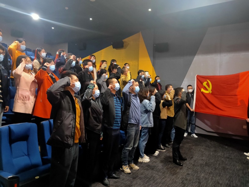 电影以抗美援朝战争中的长津湖战役为背景,讲述了中国人民解放军战士,远赴朝鲜,在极寒严酷环境下,东线作战部队凭着钢铁意志和英勇无畏的战斗精神,扭转战场态势,彻底粉碎了美军在圣诞节前结束战争的“美梦”。战士们不畏生死,用血肉身躯保家卫国,让全体同志内心备受震撼。观影结束,学校纪委书记廖建明带领全体党员重温入党誓词,面对党旗,大家庄严宣誓。