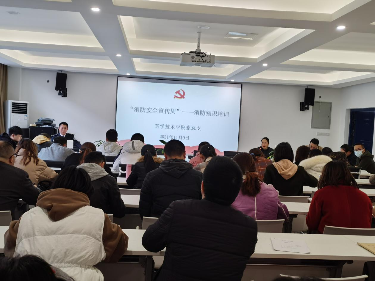 为提高师生消防安全意识,确保广大师生的生命财产安全,医学技术学院积极响应学校消防安全周号召,在“119”全国消防安全日,邀请了重庆政安消防安全培训中心教官李鑫众为学院全体教职工共计50余人进行了消防安全知识培训和消防实际操作演练。