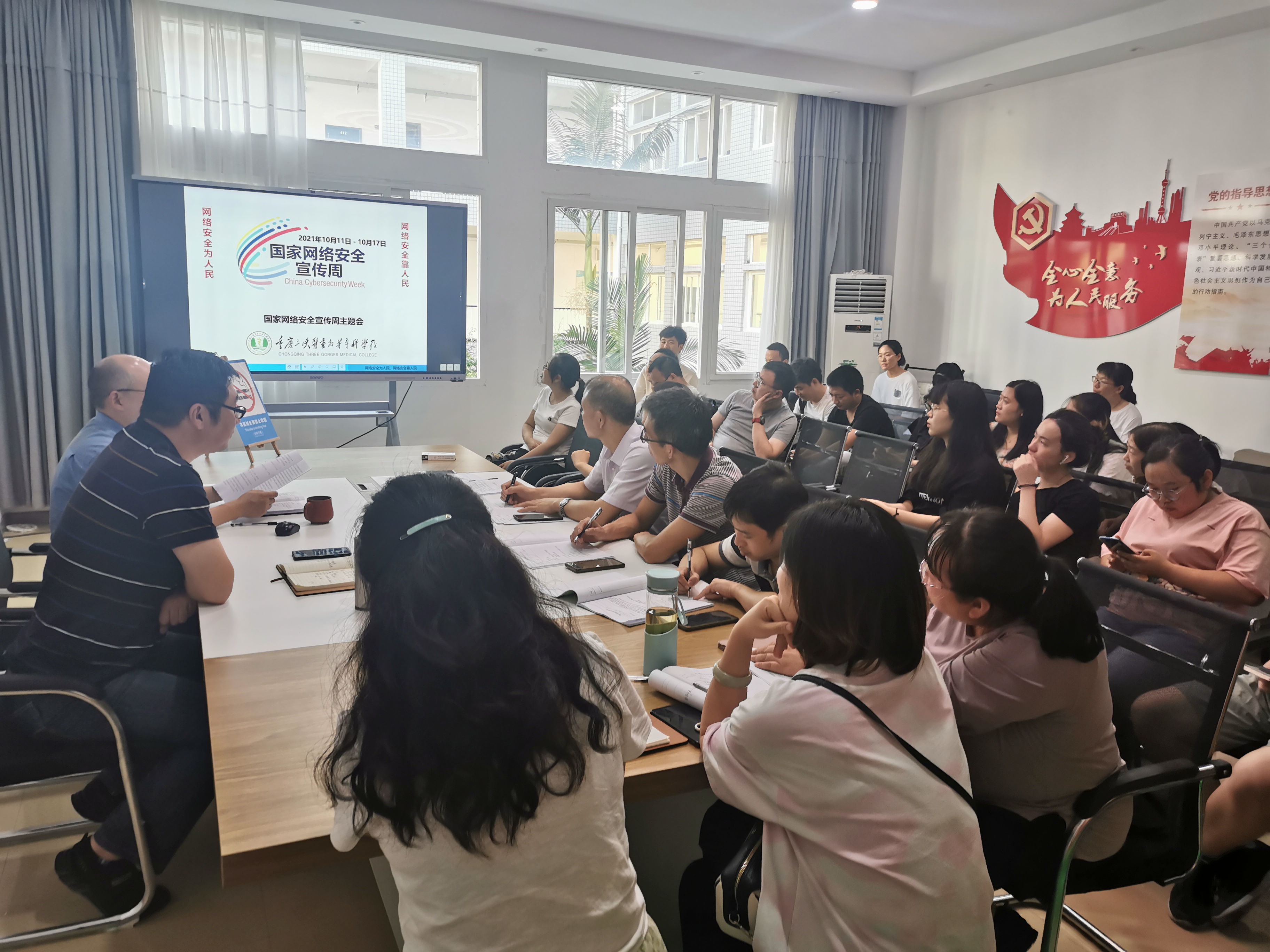 接到学校通知后,我部立即召开会议,筹划安排部署"网络安全宣传周"宣传活动工作,落实责任分工,明确活动目的,要求突出宣传实效性和思想性。会后,从部门级、教研室、个人层面分层级开展扎实的学习交流,并以教研室为单位上交了学习心得。
