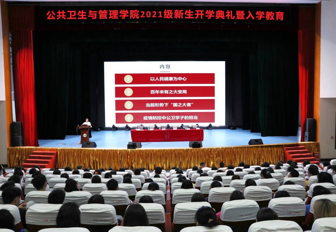 9月15日上午,公共卫生与管理学院2021级新生集中入学教育,在学术中心演播大厅隆重举行,2021级全体新同学和全院无课教师共800余人参加会议。典礼共5项议程,将爱国主义、思想政治、新生德育、医学专业、安全管理等教育融入其中。