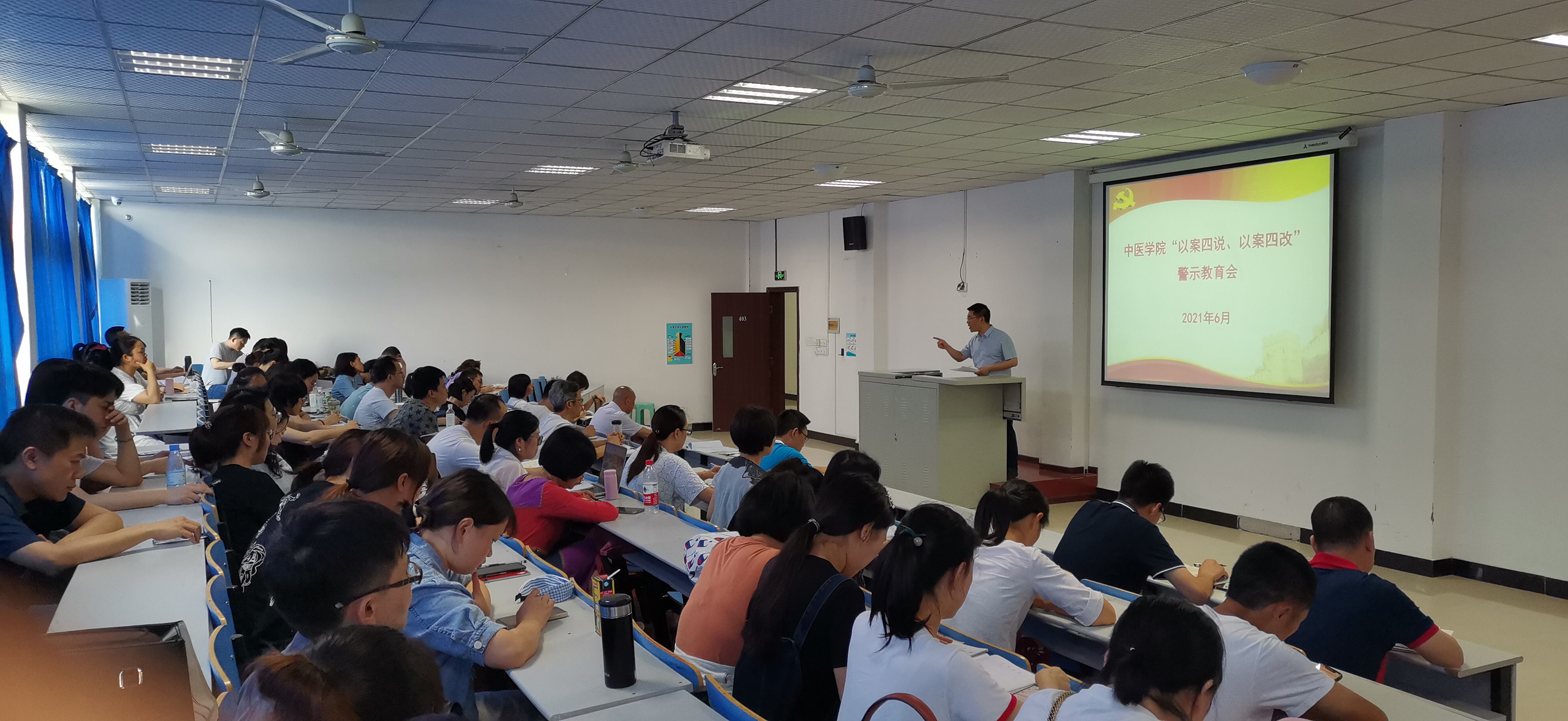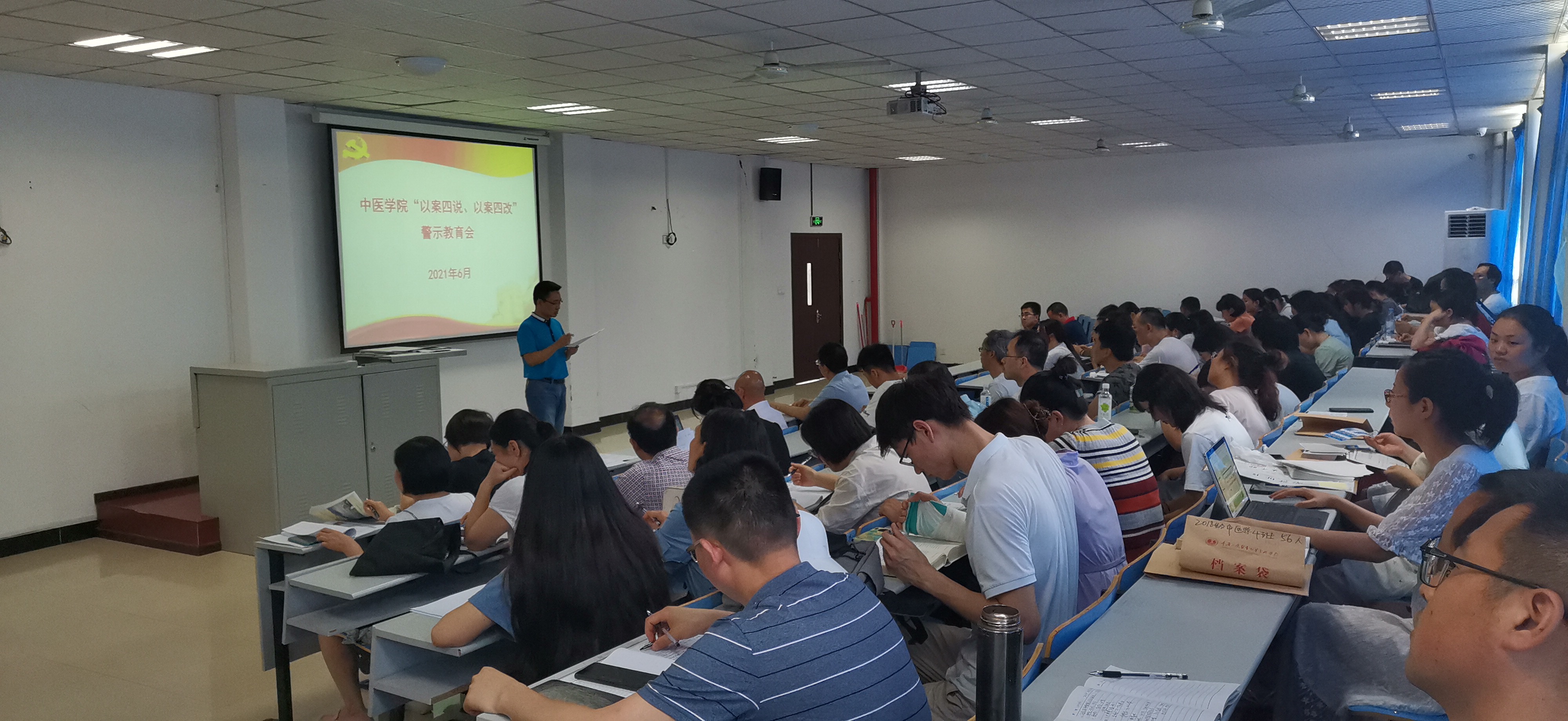 为推进全面从严治党向纵深发展,发挥身边人、身边事、身边案的警示教育作用,6月15日下午,中医学院在二训B403教室开展了“以案四说、以案四改”警示教育会,学院全体教职工参加。
