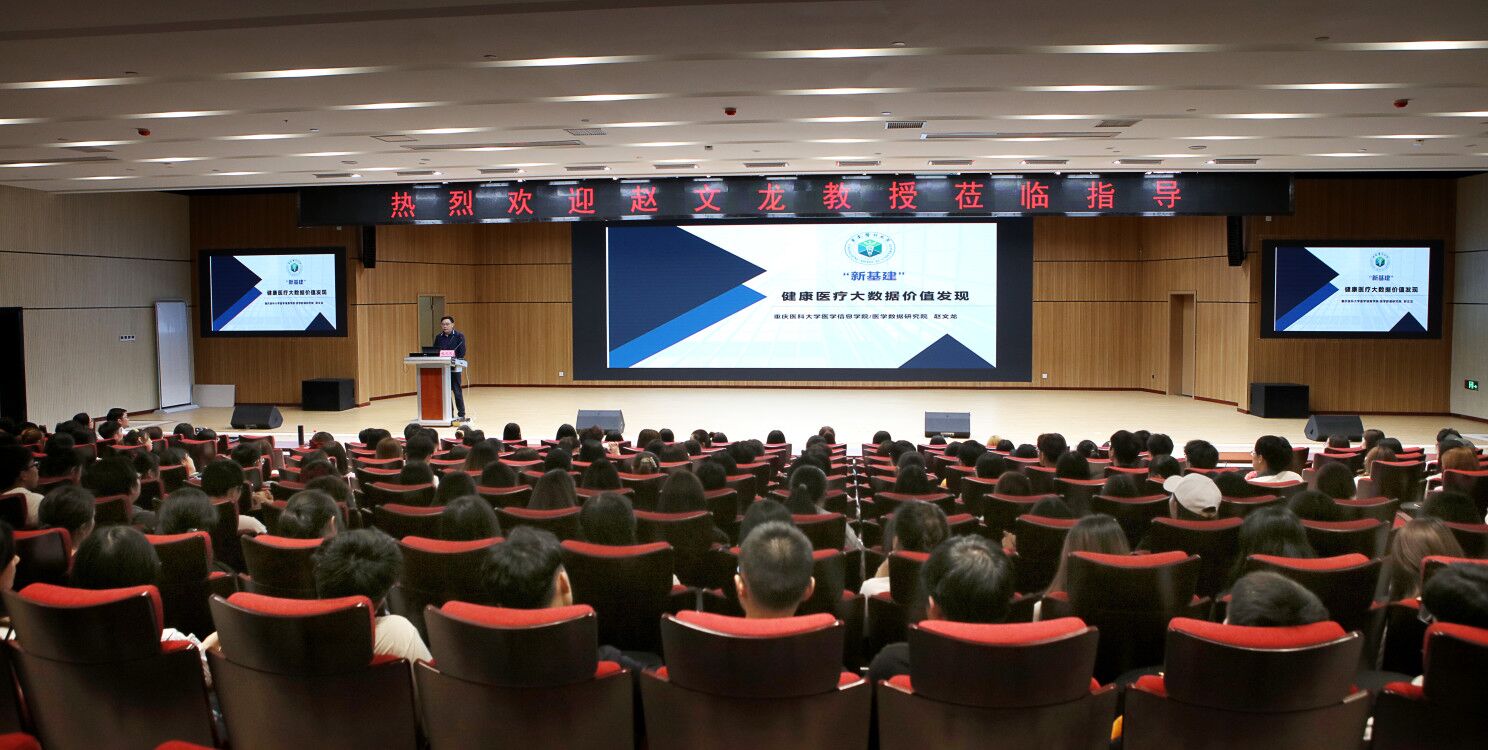赵文龙教授以《新基建:健康医疗大数据价值发现》为题,阐释了健康大数据的背景、与医学的关系、所面临的挑战及在医学实践应用等,生动形象地为公卫学院全体师生呈现了健康医疗大数据在医学领域的应用及发展前景,使师生了解到人工智能、大数据等新兴技术在医院信息化建设中的作用及应用。同时向同学们展示了新兴技术、AI等给卫生信息管理、大数据等专业带来的巨大就业潜力,以及卫生信息管理、大数据等专业技能在为基层老百姓健康保驾护航中发挥的巨大作用。