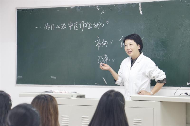 9月4日,30位专业课教师进入新生课堂,为其讲解各专业开设背景、专业基本情况以及专业人才培养方案。其中,2019级护理18班(中医护理)的专业主题教育由罗玉琳书记、张真容老师共同承担。张真容老师以详尽的电子文档和PPT为同学们介绍专业人才培养方案。罗书记则从宏观层面引导同学们思考“为什么要办中医护理方向?”、“如何办中医护理?”、“竞争优势在哪里”,伴以清晰的板书,为同学们深入浅出地解答专业疑惑,构架相对清晰的“专业观”。