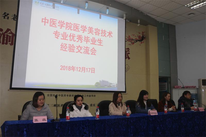 为了帮助学生全面了解医学美容技术专业特色,增强学习兴趣,树立良好的学习态度和正确的择业观、就业观,2018年12月17日晚,中医学院在学校第二教学楼学术报告厅举行了医学美容技术专业优秀毕业生经验交流会。