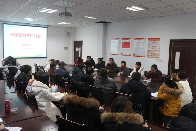 2018年12月25日,中医学院以“教育部针灸推拿传承与创新教学资源库应用推广”为主题组织召开了云课堂教学研讨会。会议由院长苏绪林主持,湖南中医药高等专科学校党委委员陈美仁教授、学校教务处冯晓灵副处长、学院全体教师参加。