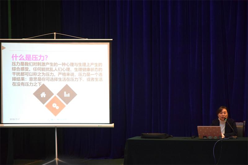 本次讲座以“压力管理”为主线,从四个方面为同学们深度剖析如何正确面对生活和学习中的压力。第一,了解压力的来源和本质,付教授阐述了当代人群产生压力主要来源于生活和学习,长期不会释放压力是导致心理健康疾病的根本原因,让同学们对压力有一个具体的认识。第二,压力对同学们身心健康的危害,付教授以生动有趣的方式,举例分析了焦虑症、恐惧症和强迫症,强调了疾病的严重危害,希望引起同学们的高度重视。第三,压力的利弊。付教授指出,压力是把双刃剑,有正负两面,只要正确认识并加以利用就可以变压力为动力。第四,如何缓解压力。付教授提出要“脸皮练厚点”,悉心接受他人评价,以自信心与果断来面对压力等合理意见。最后付教授强调,要正确认识自己,找到一个适合自己缓解压力的方法,控制自己的情绪,面对美好未来。