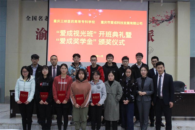 重庆市爱成科技发展有限公司成立于2008年4月14日,是重庆本土民营企业,是集眼科运营、眼视光投资管理于一体的大型集团化公司。 2018年4月28日,我校与重庆市爱成科技发展有限公司签订共育眼视光技术专业人才协议,双方在眼视光技术专业大学一年级学生中优选14人成立订单培养班,命名为“爱成视光班”。2018年11月16日,我校与重庆市爱成科技发展有限公司签订爱成基金管理办法,规定爱成奖学金每年4万元,用于奖励眼视光技术专业成绩优秀的学生。奖励标准为一等奖不低于2000元,二等奖不低于1000元,三等奖不低于500元的标准进行发放。