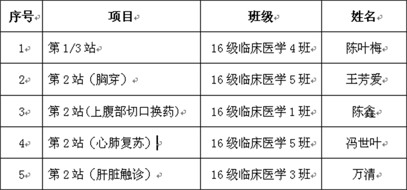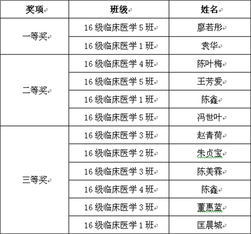 附表一 2018年临床医学专业学生技能大赛决赛获奖名单