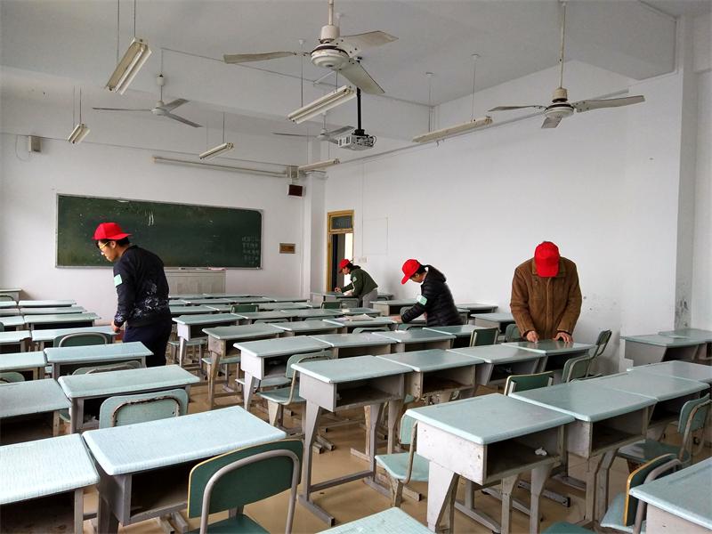 每逢课余和周末入党积极分子们都统一着装,头戴小红帽,佩戴“播撒爱心,传递文明,蒲公英在行动”的袖标,带上毛巾、刷子、橡皮擦、清洁剂、白色粉笔、刮片等清洁工具,十支小分队按照自己的分工进入教室查看课桌上的污物和文字图案,检查教室墙壁上乱写乱画的图文和污渍以及一些脚印,进入楼道查看和清理围墙、教室门、墙边和墙壁上的张贴物等影响校园环境的垃圾文化。师生不怕脏,不怕累、抡起衣袖,卯足干劲,认真仔细地用清洁刷、橡皮擦、清洁剂擦除桌面和椅背的各种笔记、图画;用白色粉笔涂盖墙上印迹;用刮片剔除墙面上污渍,用水和胶布撕掉教室课桌上、墙壁上和门上的张贴物。先后走进80余间教室,清除3200余张课桌桌面文字和污渍,3500余处椅背图画、文字和污渍,100余处墙面和楼道污渍,铲除和撕掉张贴物260余处。通过师生辛勤的劳动,教室内课桌桌面、椅背、教室墙面和楼道墙壁、门窗恢复了干净整洁,提升了教室的整体卫生状况,营造了良好的教学环境。
