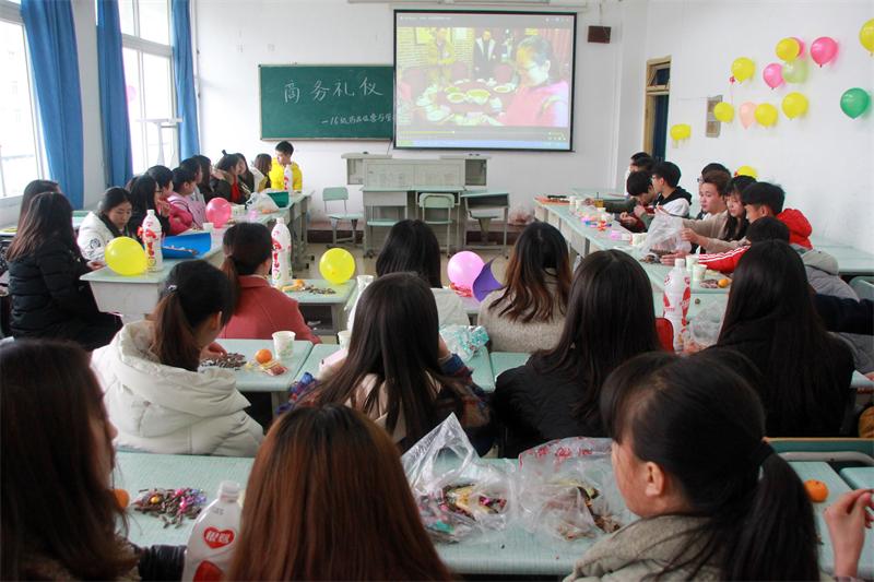 商务礼仪中有一重要的、常见的环节就是接人待物及餐桌礼仪等。在策划方案中同学们设计了师生共餐的实践教学活动,请到了学校专业老师朱晓兰、冉秋莎及专业带头人李洁玉老师为部分同学进行实践环节教学指导,并将教学片在全班播放学习。在教学片中同学们看到了在用餐活动中,三位擅长商务礼仪的教师从同学们的接待、座位的安排、吃饭过程中的细节等各方面分别予以点评和指导,让学生们结合自身实际,充分认识到自己可能存在的问题和不足,切实学到了礼仪方面的知识。许多同学发表了自己的感想,辅导员董老师也对就餐同学们的表现作出了评价。