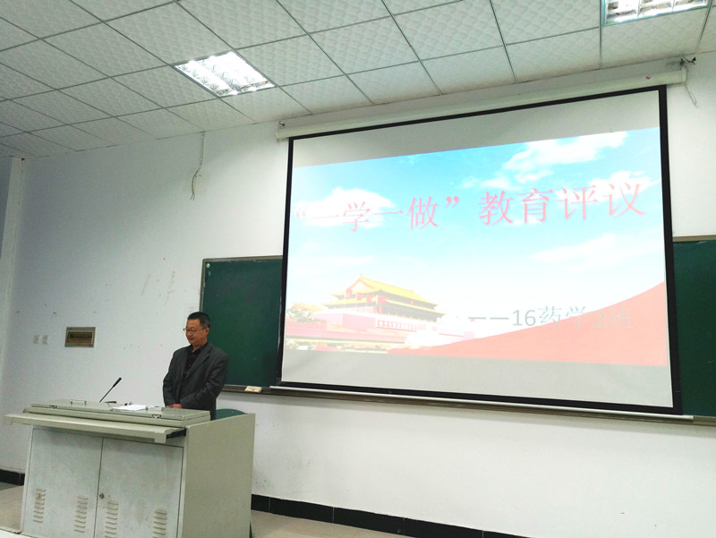 药学系谭开键书记、易东阳主任与中层干部熊安琼、袁崇斌以及教师郝坡等也纷纷深入药学系各班级开展“一学一做”专题活动,他们以其独特的方式,积极引导学生开展批评与自我批评,查找问题,制定措施,编制公约,确定目标等,相互交流激情澎湃,生动感人,催人奋进。