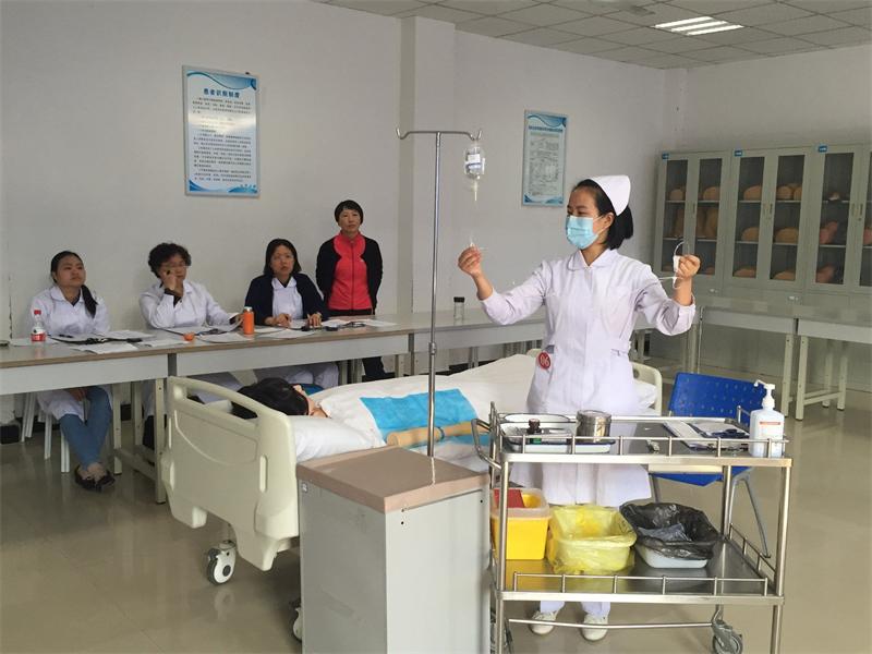 为推动教育教学改革,鼓励教师更新职教理念,强化专业技能和教学基本功。10月31日下午,护理系在护理实训中心隆重承办了学校首届全国职业院校护理教师技能竞赛选拔赛。护理系党政领导及全体教师参加,副校长袁定明出席比赛现场。