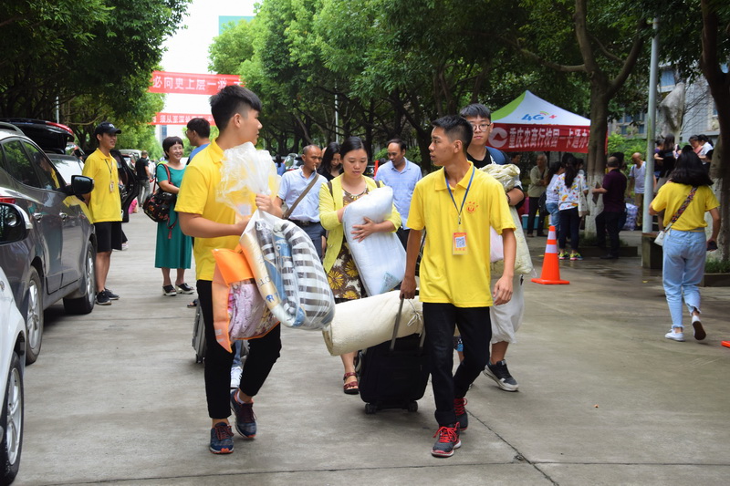 志愿者帮新生拿厚重物品