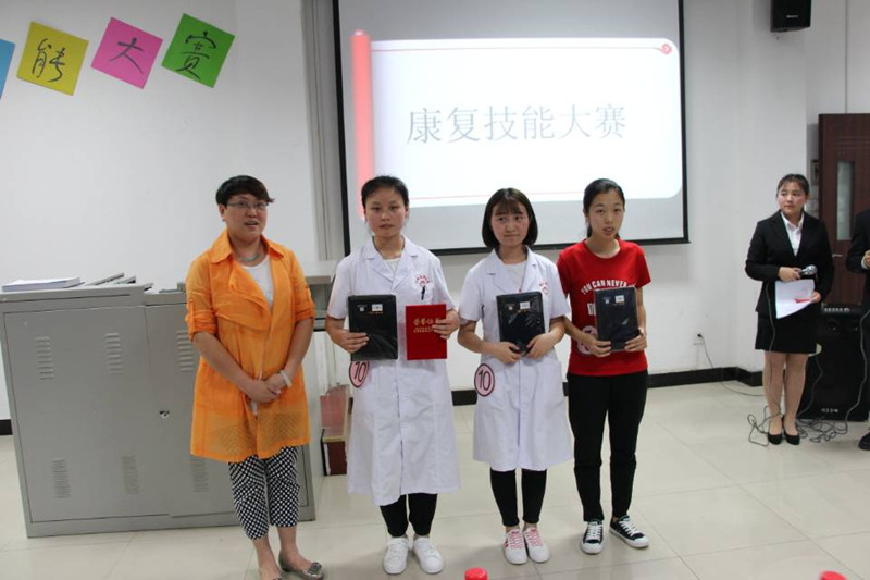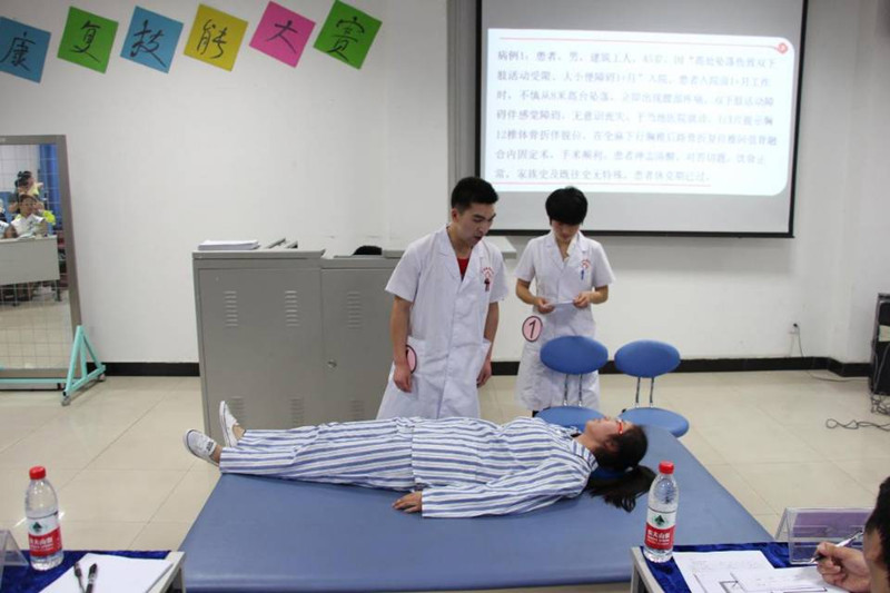 为了提高我校学生的专业实践能力,培养我校广大学生学习康复技能的兴趣,按照学校“关于举行2017年春季学期大学生职业技能(知识)大赛的通知”的要求,2017年5月23日,中医系团总支在第二实训楼209举办了康复技能大赛。本次决赛邀请到重庆三峡中心医院百安分院传统康复治疗组组长龙宝珠医师、物理治疗组组长龙兴坪医师,王忠磊老师等6人担任评委。70余名康复治疗技术专业学生一同观看决赛。
