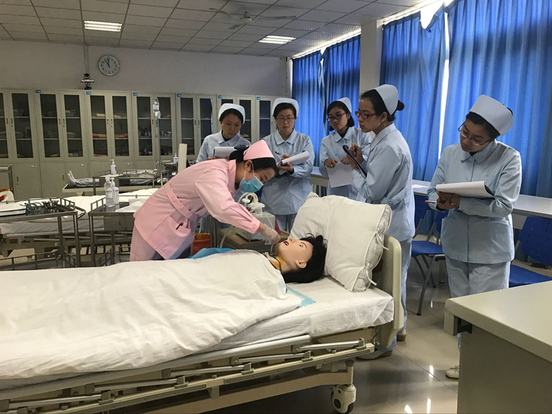 在重庆市第十届高等职业院校学生职业技能竞赛“护理技能”赛项落下帷幕后,为了更好的总结经验冲刺国赛,护理系杨柳清主任亲自带领指导教师及全体青年教师,利用清明放假的3天休息时间,趁热打铁,对选手进行强化培训及指导。
