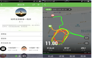 为将“三走”活动“抓广、抓响、抓实、抓长”,形成“班班有体育活动、人人有体育项目”的良好局面,临床医学系2016学年度继续利用手机APP软件,深入开展“咕咚全民健身活动”,分别于2016年3-5月、9-12月期间,先后组织两轮大众健身活动,组建各类运动团31个,通过手机“咕咚”APP健身软件参与“我运动,我健康,我分享”活动,营造了良好的体育文化氛围,在增强学生的自我健身意识,提高学生身体素质等方面,收到了良好的效果。
