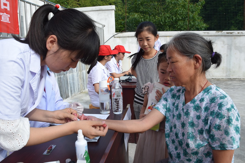 7月11日下午,带队老师蒋小平、专业指导老师吴海燕带领服务团20名队员到部分村民家中,入户宣传健康知识。队员们结合农村常见疾病,用通俗易懂的语言详细地为村民们讲解防治方法,并耐心解答村民提出的问题。服务团深入基层,服务群众,将所学的专业知识运用到社会实践中,把关怀之情带给老屋村的乡亲,深深地温暖乡亲们朴实的心。
