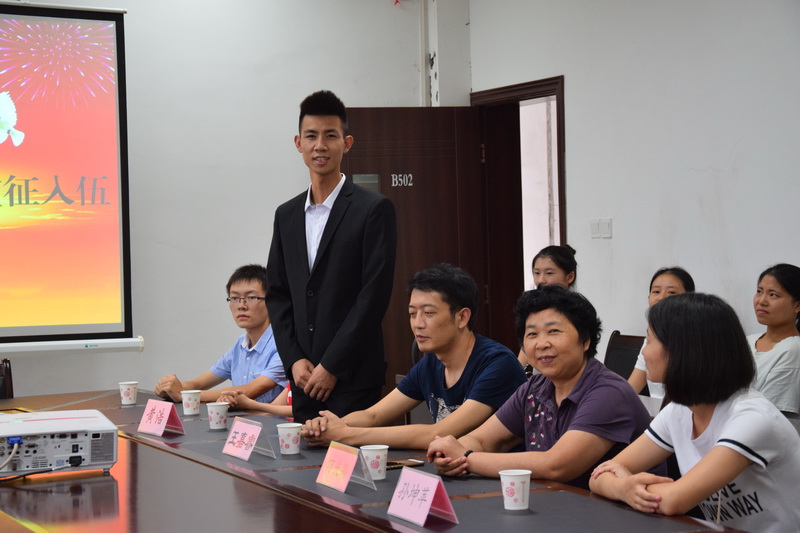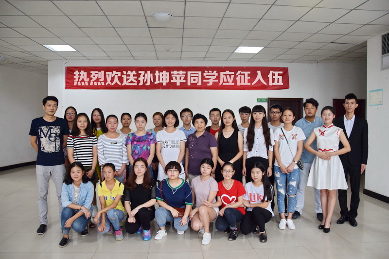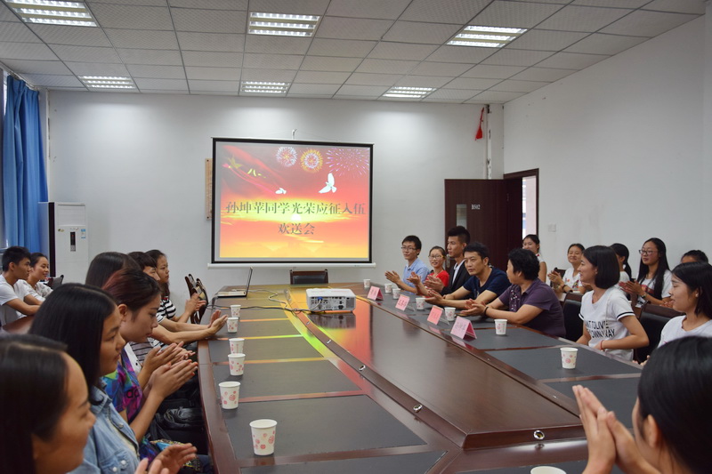 为学习贯彻习近平总书记系列讲话精神,聚焦实现强军目标,凝聚意志力量,培养我系学子树立革命军人与合格党员的观念,医学技术系始终努力抓好大学生征兵入伍工作。2016年9月20日下午,我系在第二实训楼502会议室,为2015级医学检验技术3班的孙坤苹举办应征入伍欢送会,医学技术党总支副书记何光碧老师,就业指导中心易铭老师,辅导员王嘉睿老师,学生代表黄浩等出席了此次欢送会,为孙坤苹同学光荣参军表示祝贺。