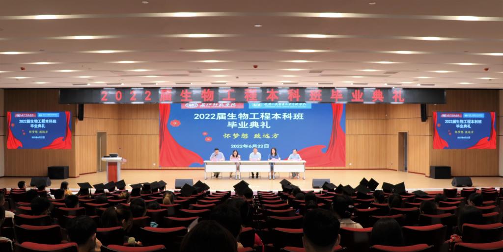 简朴又隆重的毕业典礼圆满结束。2022届生物工程本科班2020年入学以来,在学校关心下,专业上提供优质教学资源,生活上提供帮助和支持。两年来班级荣获“五四红旗团支部”荣誉称号,发展党员2人,2人获得长江师范学院“优秀毕业生”称号,班级32人考研,国家线上线人数16人,录取11人。这些成绩是学校对2022届生物工程本科班的关心关爱积累的,未来医学技术学院也将继续加强专业建设,力争培养更多人才,同时为本科转型积累更多经验。
