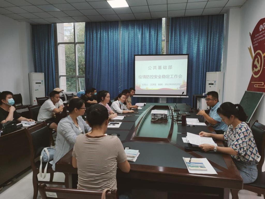 9月20日下午,公共基础部在学术中心209召开疫情防控和安全稳定工作会议,教研室(中心)主任、安全员、实验员、管理员共17人参会。会议由公共基础部王洪生副主任主持。