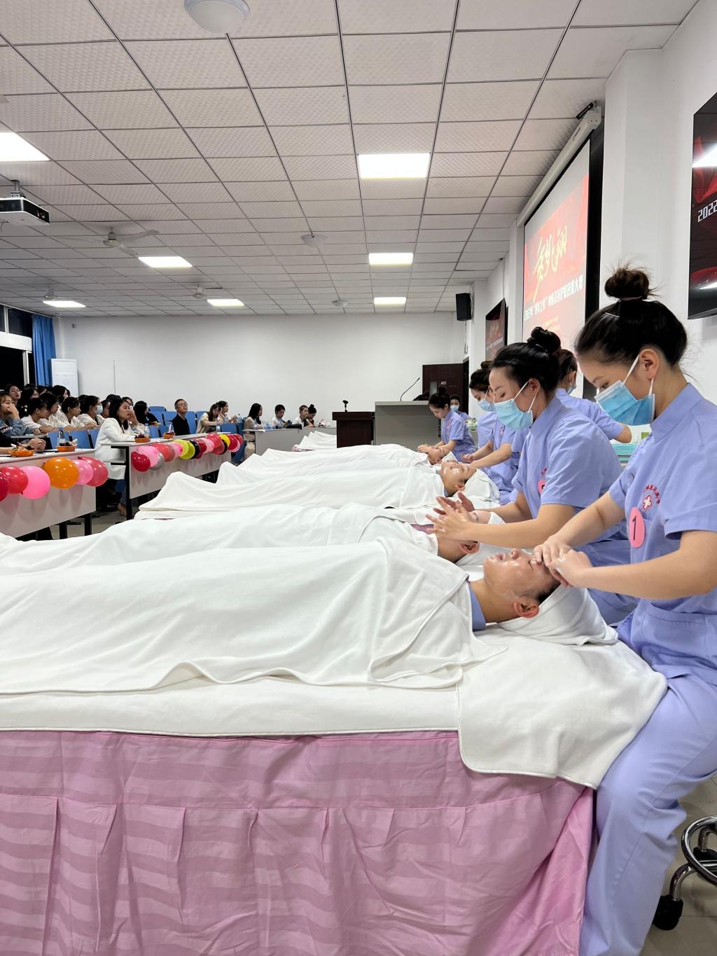 为提高医学美容技术专业学生的专业修养和技能水平,9月29日晚,中医学院在第二实训楼403教室举行了“伊美之星”中医美容护肤技能大赛决赛。本次比赛邀请了万州伊美医疗门诊部总经理任能文、皮肤科主任医师王宗明、皮肤科主治医师罗琼和重庆轻漾美容有限公司总经理王怡爽等专家担任评委。中医学院副院长张光宇,医学美容教研室全体教师,2021级、2022级医学美容技术专业的学生代表到场观摩。