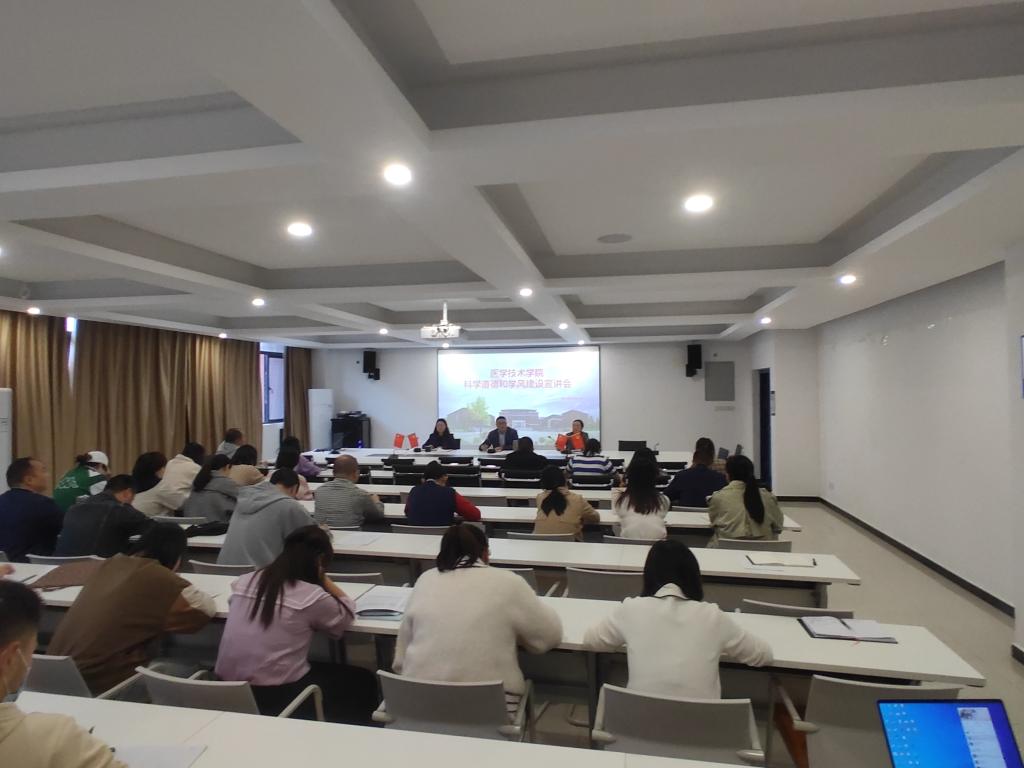 10月21日下午,医学技术学院在学院会议室召开了科学道德和学风建设宣讲会,医学技术学院党政负责人和全体教职工40余人参加会议。
