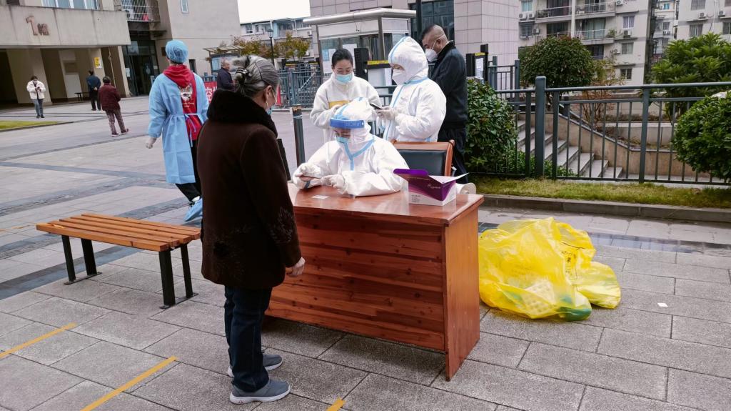 从早上七点开始到下午一点结束,一身隔离服全程着装,不能上厕所,因而从前一天开始就不敢多喝水,这是防疫工作者的常态,青年教师张宏静也是如此。得知全民核酸人手不够时,张宏静主动前往社区,协助工作人员准备核酸检测相关物料,并维持核酸排队秩序以及录入核酸采集信息。因为所分配到的检测点老年人居多,部分人员口罩佩戴得不规范,张宏静耐心讲解和劝诫,欣慰的是,有的爷爷奶奶虽然年纪大了有点小脾气,但只要耐心讲解都还是很配合的,而且大家看到行动不便的人员和着急上网课的小孩,都很热心的让其去最前面“插队”。张宏静讲到:“我不怕累,这点工作量跟冲在一线的志愿者比就是九牛一毛,他们才是最辛苦的,作为一名中共党员,在人民需要我的时候,我就要冲在最前面,这是我的使命,我是一块砖,哪里需要就往哪里搬!”