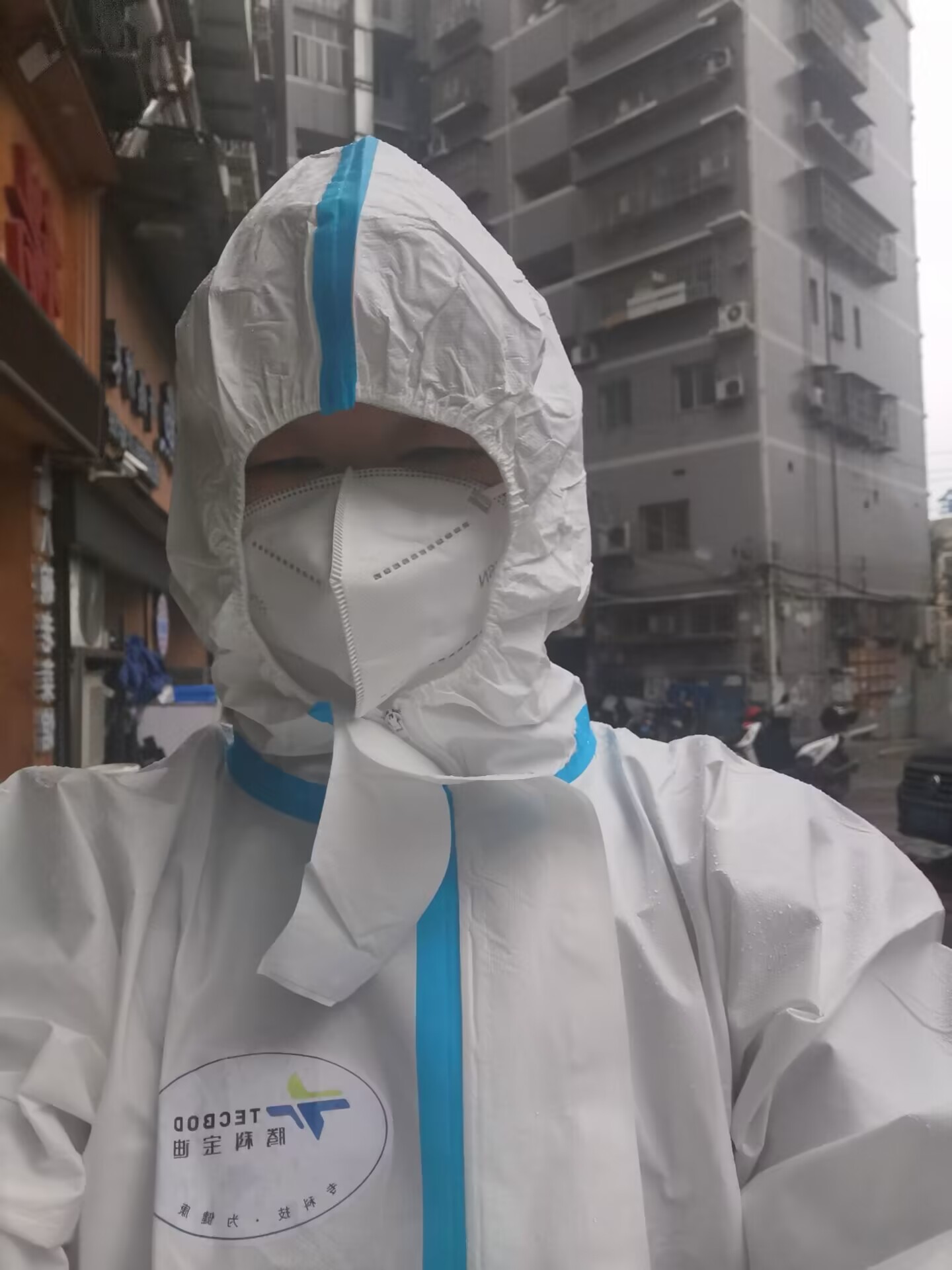(易思荣穿上隔离服开始工作)